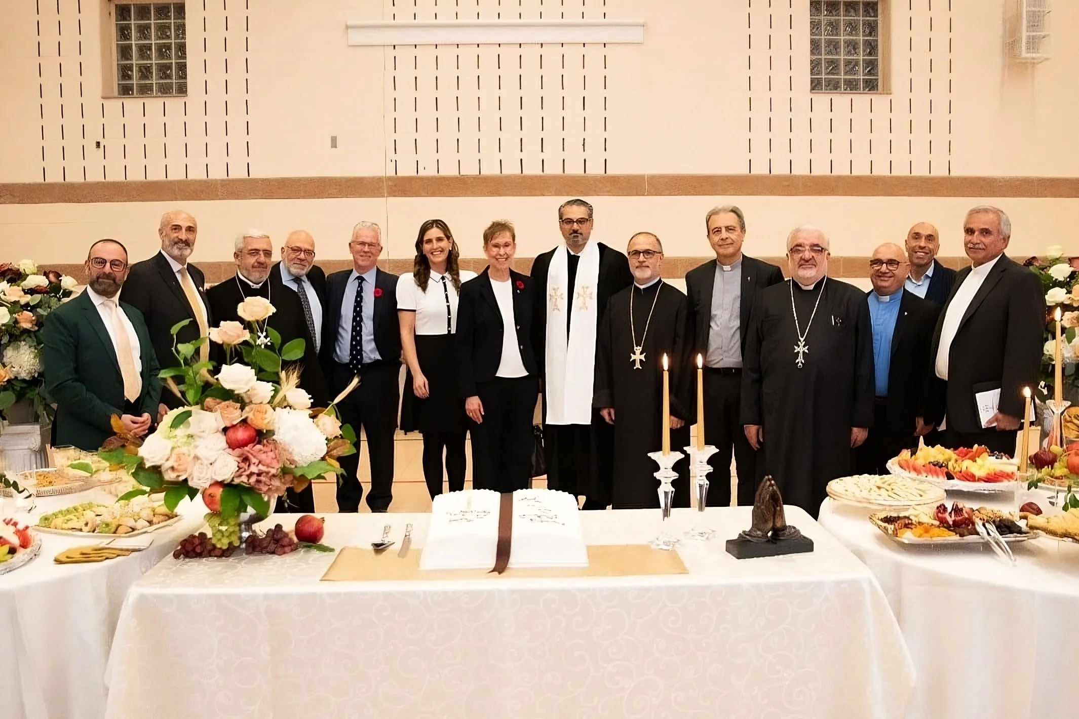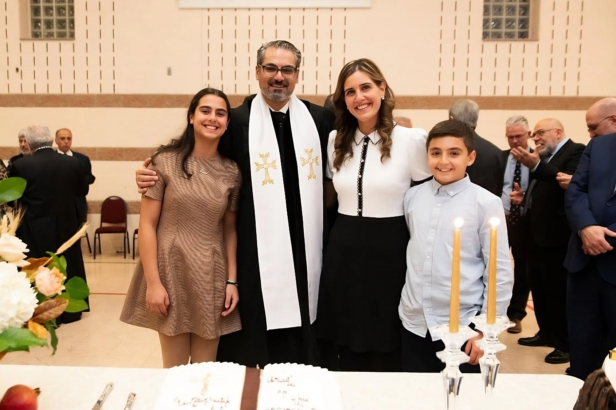 Վերջանուագով թափօրը ելաւ սրահէն։ Ներկաները ուղղուեցան «Վեր․ Մովսէս Ճանպազեան» սրահ, ուր ճոխ ու բազմապիսի ուտելիքներով ու քաղցրեղէններով ողողուած սեղաններուն կեդրոնը հանգչած էր սպիտակ կարկանդակը՝ Սուրբ գիրքի տեսքով։ Մոմերով ու շքեղ զարդարանքներով գեղեցկացած սեղանները եւ ճաշակաւոր համադրութեամբ հսկայ ծաղկամաններուն բազմերանգ վարդերով զարդարուած սրահը կը շողային սիրոյ եւ շնորհքի փայլքով։