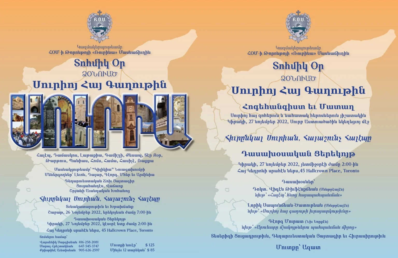 Սուրիոյ հայ համայնքին նուիրուած այս տարուան «Տոհմիկ օր»-ուան մէջ մեր ձեռքով-ոտքով մխրճուած ըլլալը, կարծեմ, Թորոնթոյի հայ գաղութին կարեւոր մէկ մասնիկը ըլլալնիս կը փաստէ արդէն։