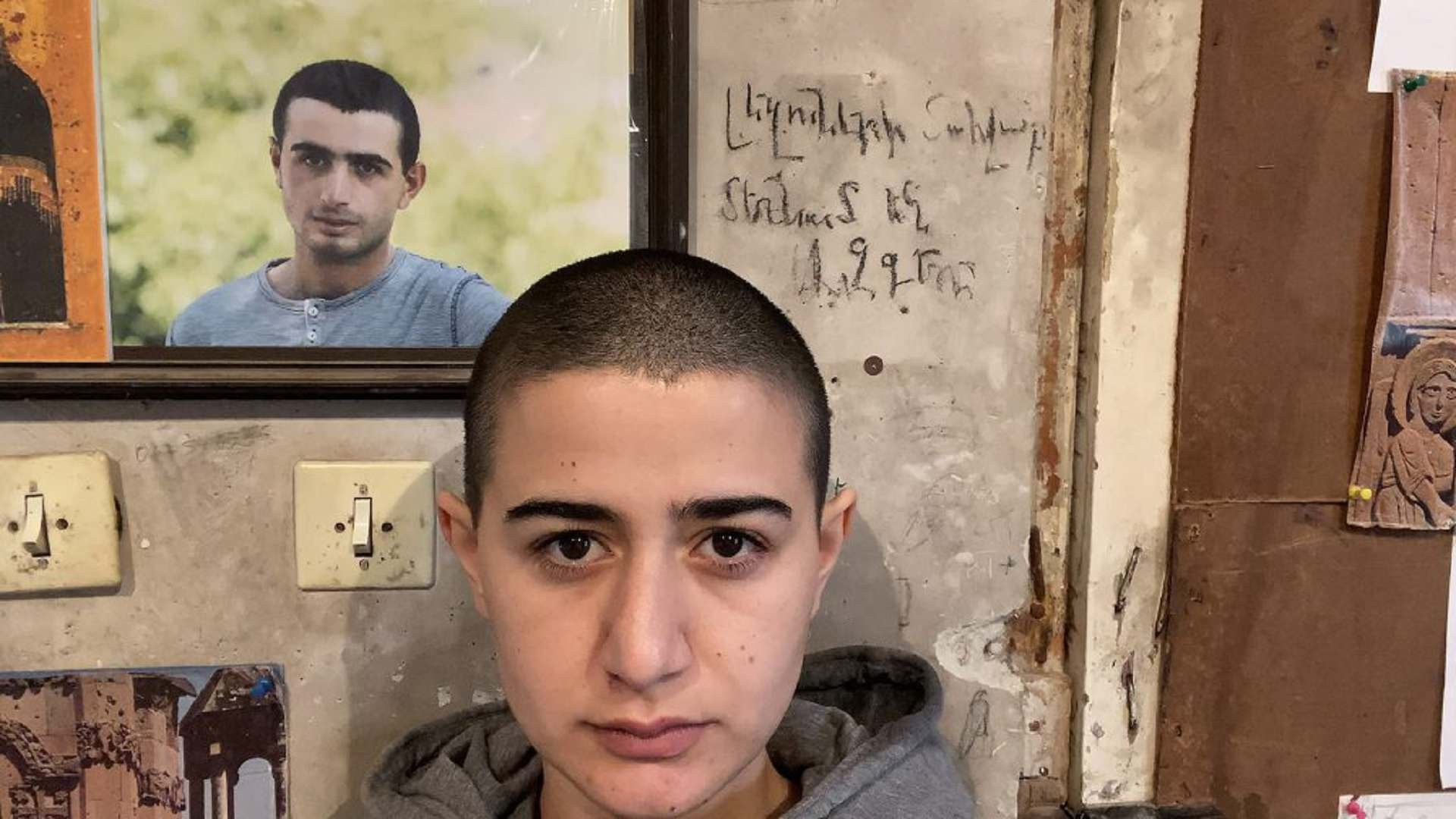Շողակաթը՝ կանգնած եղբօր լուսանկարին առջեւ. (տեսարան՝ ֆիլմէն. առուած Verzio փառատօնի կայքէն)
