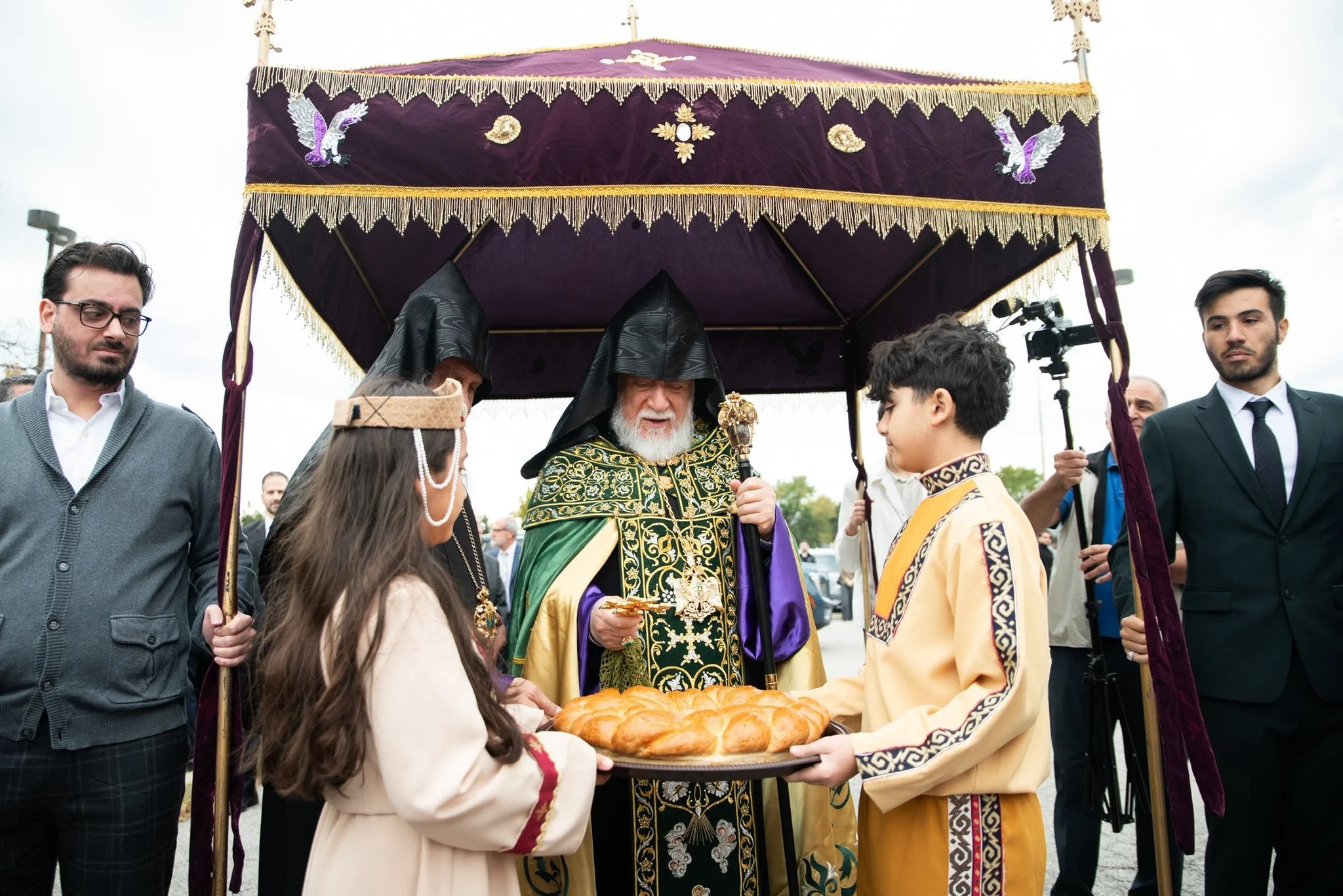 Նորին սրբութիւնը իր հայրապետական պատգամին սկիզբը ողջունեց առաջնորդ սրբազան հայրը, գաղութին մէջ ծառայող հոգեւոր դասը, ազգային վարչութիւնն ու յարակից մարմինները, որոնք զանազան պատասխանատուութիւններով իրենց գործօն մասնակցութիւնը կը բերեն մեր եկեղեցւոյ պայծառութեան ու համայնքի կենսունակութեան եւ զարգացման նպաստող աշխատանքներուն: